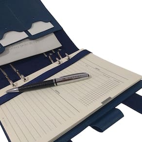 • Medidas 165 x 210 mm fechada, com aba para papéis, três porta cartões, fechamento por botão magnético e cortes frontais à laser para acomodação da ferragem.