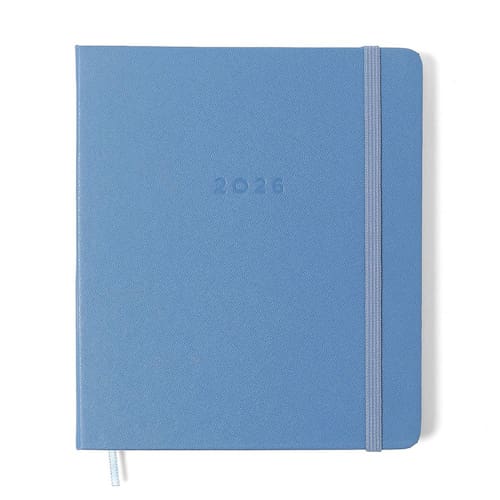Capa material pelica, com "2026" e logo em baixo relevo.
