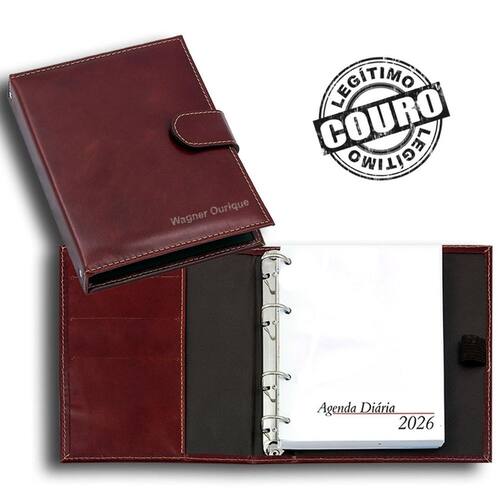 A Agenda Super 2026 de Couro é perfeita para quem busca um produto de qualidade e personalizado com o seu nome ou da sua empresa para organizar compromissos, registros e informações importantes. Suas argolas permitem trocar as folhas, de modo que ao término do ano basta comprar o refil para o próximo.
