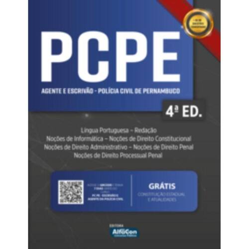 A obra A chance de fazer parte do Serviço Público chegou, e a oportunidade está no concurso para Agente e Escrivão da Polícia Civil de Pernambuco - PCPE 4ª Edição. Para ingressar nesta carreira, é fundamental que a preparação para a prova seja feita de forma eficaz - com os materiais certos. Isto é, neste universo dos concursos públicos, estar bem-preparado faz toda a diferença. Por isso, a Editora AlfaCon, sempre atenta e preocupada com nossos concurseiros, apresenta esta obra diferente e perfeita para você. Nesse sentido, no decorrer dos assuntos, o estudante encontrará dicas para a sua compreensão. Toda essa disposição foi pensada para auxiliar o concurseiro, a obter sucesso na carreira que almeja. CONTEÚDOS CONTEMPLADOS Língua Portuguesa Noções de Informática Noções de Direito Constitucional Noções de Direito Administrativo Noções de Direito Penal Noções de Direito Processual Penal ON-LINE Constituição Estadual e Atualidades O AlfaCon preparou todo o material com explicações, reunindo os principais conteúdos relacionados a prova, dando ênfase aos tópicos mais cobrados. ESTEJA ATENTO AO CONTEÚDO ONLINE POR MEIO DO CÓDIGO DE RESGATE, para que você tenha acesso a mais conteúdo. Desfrute de seu material o máximo possível, estamos juntos nessa conquista!