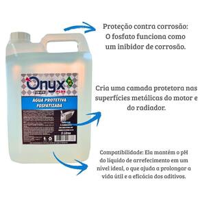 O grande diferencial da Água Fosfatada ONYX está na sua composição. Ela conta com a adição de fosfatos, que funcionam como um potente inibidor de corrosão. Essa tecnologia cria uma camada protetora ativa nas superfícies metálicas do sistema de arrefecimento, defendendo o motor de forma contínua e eficaz.