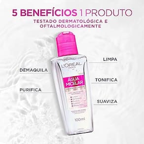 5 benefícios em 1: limpa, demaquila, purifica, suaviza e reequilibra. Remove a poluição e a oleosidade. Eficaz na remoção da maquiagem dos olhos e lábios. Para todos os tipos de pele, incluindo as mais sensíveis e oleosas. Não precisa enxaguar o rosto após o uso.