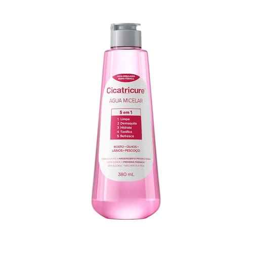 Cicatricure® Água Micelar enriquecida com Água de Rosas. Contém micelas que, com uma única passada, atuam como ímãs para capturar a sujeira, a maquiagem e a oleosidade da pele.