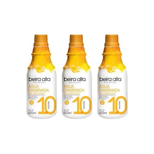 Descrião: Água Oxigenada Beira Alta 10 Volumes 900ml. Informações do Produto: A Água Oxigenada Beira Alta 10 Vol 3% H2O2 é indicada para uso doméstico e profissional. Utilizada para tinturas semi permanentes, como emulsão tonalizante. Contém lanolina, emoliente especial para processos químicos, que hidrata, dá brilho, evitando o ressecamento dos cabelos.