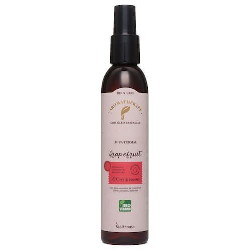 A Água Termal de Grapefruit da Via Aroma é rica em sais minerais como cobre, zinco, magnésio que auxiliam na renovação celular. Além disso, o Óleo Essencial de Grapefruit possui propriedades únicas e benéficas para sua pele.