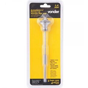 Marca: VonderConteúdo da embalagem:1 Agulha de 1,4 mm, 1 bico de 1,4 mm, 1 núcleo da mola e 1 guia da agulha.Aplicações e dicas de uso:Indicado para uso exclusivo na pistola de pintura modelo PSV 100 Vonder.Detalhes Técnicos:Modelo da pistola: PSV 100 Diâmetro do bico: 1,4 mm Massa aproximada peso kg : 0,08 kg