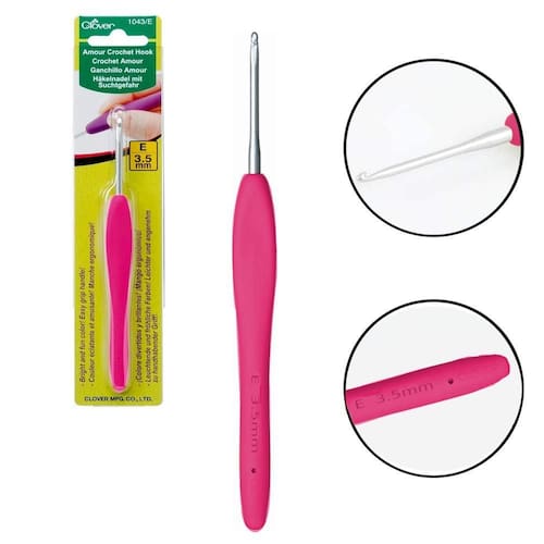3. Qual é a cor da agulha? - A Agulha Para Crochê Clover Amour 3.5mm possui cabo rosa.