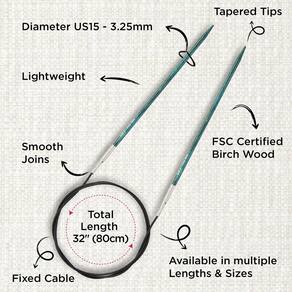 - Conforto sensorial e prazer: as agulhas circulares fixas feitas de madeira de bétula oferecem uma superfície lisa e polida que é deliciosamente quente ao toque. Isso não apenas oferece um puro prazer sensorial, mas também garante o máximo conforto durante as sessões de tricô.