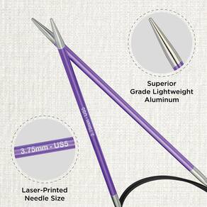 - Alumínio leve de grau superior: as agulhas circulares fixas Zing são fabricadas em alumínio leve de grau superior. Estas agulhas leves com pontas afuniladas passam perfeitamente por todos os tipos de fios. A superfície lisa das agulhas de tricô de alumínio permite uma melhor aderência e uma experiência de tricô suave.