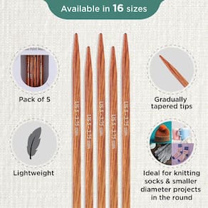 - Agulhas de ponta dupla: as agulhas de ponta dupla vêm em um pacote de 5 agulhas e são úteis para projetos que exigem tricô redondo. Estas agulhas funcionam em uma combinação de 4 ou 5, dependendo do padrão e do item que está sendo tricotado.