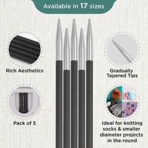 - Estética luxuosa: a cor preta hipnotizante das agulhas e as pontas de latão brilhantes encapsulam pura elegância e sofisticação. As agulhas de ponta dupla KnitPro Karbonz com seu rico apelo estético tornam-se uma escolha indispensável entre os knitters experientes. As agulhas são um charme para os olhos e para sua caixa de artesanato.