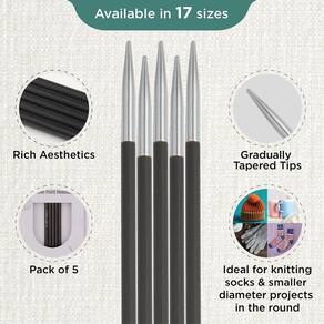 - Estética luxuosa: a cor preta hipnotizante das agulhas e as pontas de latão brilhantes encapsulam pura elegância e sofisticação. As agulhas de ponta dupla KnitPro Karbonz com seu rico apelo estético tornam-se uma escolha indispensável entre os knitters experientes. As agulhas são um charme para os olhos e para sua caixa de artesanato.