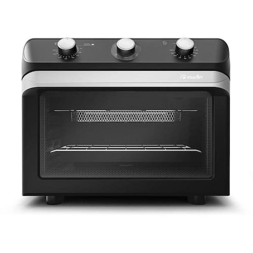 Air Forno Elétrico Mueller MFB35G é perfeito para quem busca mais praticidade na cozinha. Seja para fritar sem óleo com a função Fryer ou para assar mais rápido com a função Turbo.Assa, doura, gratina, frita sem óleo, mantém aquecido e descongela.Capacidade de 35 litros para as refeições de toda a famíliaPorta com vidro duplo: aumenta o isolamento térmico e garante a eficiência e baixo consumo de energiaPrateleira cromada com cinco níveis de altura para mais possibilidades de preparosAcabamento do forno com esmalte total clean garante paredes lisas e fáceis de limparLuz com acendimento automático para melhor visualização do seu preparo.Capacidade (L):35Cor:PretoDimensões Externas (AxLxP) (cm):39 x 48 x 45Dimensões Internas (AxLxP) (cm):25 x 37 x 38Dimensões da Embalagem (AxLxP) (cm):41 x 51 x 49Função Turbo:SimFunção Descongelamento:SimTensão (V):127 Peso líquido (Kg):11,5Peso Bruto (Kg):11,8Timer com autodesligamento:Sim (120 min ou contínuo)Controle de Temperatura (ºC):50 a 250Potência Máxima (W):1800Resistência Inferior (W):900Resistência Superior (W):900Resistência Air Forno (W):1500Consumo (Kw/h) a vazio 200ºC:0,65Níveis de Prateleira:Cinco NíveisLuz no Forno:SimAcabamento Interior:Esmaltado Total CleanBandeja Fryer:SimBandeja Coletora:SimFunção Fryer:SimGarantia:1 ano