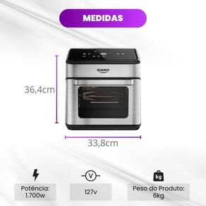Air Fryer Dako 12L Inox Painel Digital 1700W Espeto Giratório 127V ou 220V
