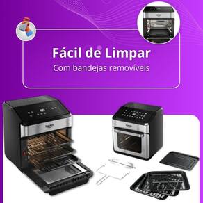 Além disso, conta com 8 funções pré-programadas, controle total de temperatura e um sistema inteligente que avisa a hora certa de virar os alimentos — tudo isso com um acabamento fácil de limpar e acessório para cada função.