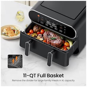 Pacote Completo: A fritadeira sem óleo vem equipada com uma cesta de 10,4 L, um divisor removível, uma placa mais crocante e 17 receitas fáceis de seguir para iniciar suas aventuras culinárias. Tudo o que você precisa para elevar a hora das refeições.