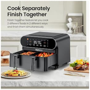 Cozinhe e Sirva Juntos: Prepare duas refeições distintas simultaneamente em temperaturas e configurações variadas, garantindo que tudo esteja pronto ao mesmo tempo, sem necessidade de espera.