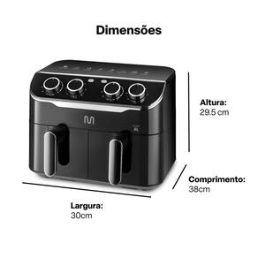 Marca: Multi Modelo: Air Fryer 8L Preta com 2 Gavetas 2500W 220V Multi - GO233 Tensão: 220V Potência: 2500W Capacidade: 8 Litros Timer Sonoro: Até 90 Minutos Gavetas: 2 Independentes Baixo Ruído: Sim Desligamento automático: Sim Controle de Temperatura: Sim Composição do material: PP Dimensões -LxAxC-: 32 x 29 x 39 cm Peso: 7Kg Inmetro: UL-BR 24.0773