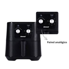 Air Fryer com 1700W de potência, sistema de circulação de ar ultrarrápido, 7 litros de capacidade, termostato ajustável de 80°C a 200°C, timer de 60 minutos com aviso sonoro, desligamento automático e proteção contra aumento excessivo de temperatura. Possui alça e estrutura com proteção cool touch antitérmica, cesto removível com antiaderente, trava de segurança e pés antideslizantes.Porta-fio