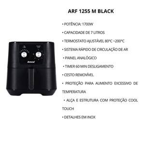 Sistema de circulação de ar ultrarrápido, termostato ajustável, timer de 60 minutos com aviso sonoro, desligamento automático, proteção contra aumento excessivo de temperatura, alça e estrutura com proteção cool touch antitérmica, cesta antiaderente e removível, trava de segurança, pés antideslizantes.Porta-fio
