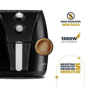 Imagine preparar refeições deliciosas, saudáveis, rápidas e sem complicação. Com a Air Fryer Britânia 5L BAF45A é possível. Com sua impressionante capacidade de 5 litros, você pode preparar pratos para toda a família de uma só vez. Com 1500W de potência, a Air fryer garante que suas refeições fiquem prontas em um piscar de olhos, economizando tempo e energia. Desenvolvida com tecnologia Air Flow a Air Fryer Britânia BAF45A proporciona uma circulação de ar quente em 360 graus. Ou seja, cozinha os alimentos de forma uniforme e rápida. Esqueça os alimentos grudados e a limpeza difícil: com o revestimento antiaderente Gold, a limpeza é fácil e sem complicações. Equipada com timer ajustável de 0 a 60 minutos e o controle de temperatura de 80 a 200 graus, garante o preparo de uma variedade de receitas, sempre no ponto ideal. Segurança é prioridade: a trava de segurança e a proteção contra superaquecimento garantem uma experiência tranquila, enquanto o desligamento automático permite que você cuide de outras tarefas enquanto sua Air Fryer Britânia BAF45A trabalha por você. Transforme sua rotina na cozinha e descubra a satisfação de cozinhar com a Air Fryer Britânia 5L BAF45A!