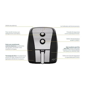 A tecnologia Air Flow, com circulação de ar quente em 360 graus, assegura que cada ingrediente seja cozido de maneira uniforme, crocante por fora e suculento por dentro. Equipado com o seletor de temperatura ajustável de 80 a 200 graus, você tem o controle total sobre o ponto perfeito de cada refeição, o que torna o preparo mais intuitivo e agradável.