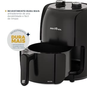 Air Fryer Britânia Compacta 2L, 1000W, tecnologia Air Flow 360°, timer de 60 minutos, proteção contra superaquecimento, cesto removível com revestimento antiaderente e base antiderrapante., Air Fryer Britânia Compacta 2L, 1000W, tecnologia Air Flow 360°, timer de 60 minutos, proteção contra superaquecimento, cesto removível com revestimento antiaderente e base antiderrapante.Desligamento automático
