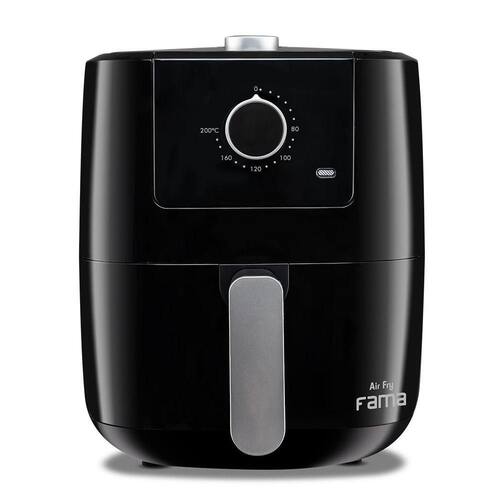 Air Fryer Fama 3L com revestimento antiaderente, timer de 30 minutos, temperatura ajustável de 80 a 200 graus, cesto removível e sistema de proteção contra sobreaquecimento.Porta-fio