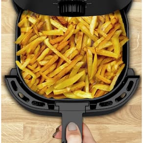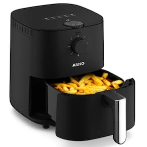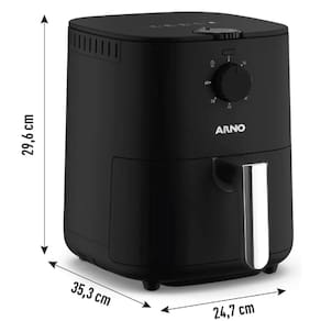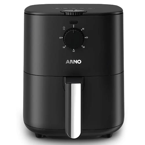Fritadeira elétrica sem óleo Arno All Black com capacidade de 3,5L, timer de 60 minutos e temperatura ajustável de 80°C a 200°C. Possui tecnologia Hot Air para cozimento uniforme e saudável.Desligamento automático