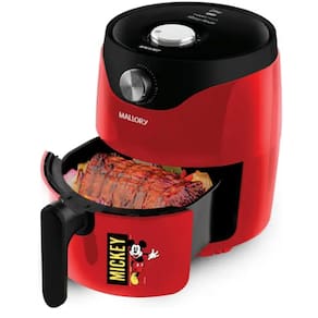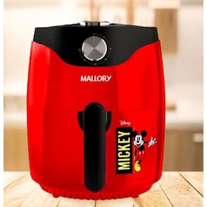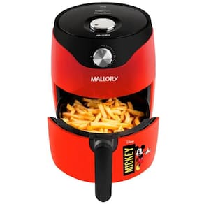 Fritadeira elétrica sem óleo Mallory Luxx Red com capacidade de 3L, timer de 30 minutos, controle de temperatura (80-200°C), cuba antiaderente removível e sistema Spin Air.Porta-fio