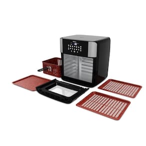 - Produto acompanha 2 assadeiras, cesto antiaderente com 5,2L e alça removível, mais 1 bandeja coletora de gordura e migalhas