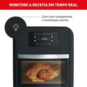 Com capacidade de 11 litros, você pode preparar várias receitas de uma só vez. Acompanha 7 acessórios exclusivos, incluindo cestos, espeto giratório, grill com alça e grelha de alumínio fundido que deixa aquela marquinha de churrasco irresistível.