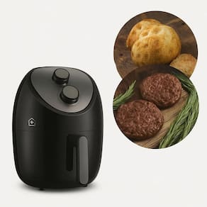 Capacidade de 3,5 Litros, Grelha interna removível, Revestimento antiaderente, Temperatura ajustável de 80°C a 200°C, Timer de até 30 minutos com aviso sonoro e desligamento automático, Proteção contra superaquecimento.Porta-fio