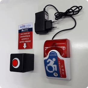 Alarme Audiovisual Para Banheiro Pne /Pcd - Sem Fio Para instalação em sanitários acessíveis e para outros ambientes frequentados por pessoas com deficiência, mobilidade reduzida e idosos. Oferecendo mais segurança e conforto; Este produto atende aos requisitos da norma abnt-nbr 9050. O alarme audiovisual é de uso obrigatório nos sanitários acessíveis conforme descrito na norma NBR 9050 de acessibilidade, podendo também ser utilizados em quartos ou locais onde pessoas que possuem algum tipo de deficiência fique isolados e pode necessitar de ajuda. Sua principal função é comunicar de forma imediata quando o usuário aciona a botoeira que ele precisa de auxílio com emergência. Sendo recomentado para todos os ambientes públicos ou privados que contam com banheiro PNE / PCD tais como: hospitais, hotéis e pousadas, casas de repouso, clínicas, escritórios em geral. Para que o atendimento seja realizado de forma ágil é imprescindível que tenha uma chave reserva afim de realizar a abertura da porta pelo lado de fora em casos de emergência. O alarme para banheiro audiovisual emite sinais sonoros e luminosos, possuindo alcance de aproximadamente 30 a 50 metros. O contato da botoeira e alarme é feita sem fio (radiofrequência), a botoeira possui uma bateria de 12v. Sua botoeira deve ser instalada a 40cm (conforme norma NBR9050) do chão permitindo assim o fácil acionamento em caso de emergência. Produto totalmente nacional e projetado para maior vida útil do produto. Especificações Técnicas: Tensão de Funcionamento ( Alarme ) : Bivolt - 127/220V - 50/60Hz; Princípio de Funcionamento: Ondas de Radiofrequência (RF); Iluminação: LED de Alto Brilho ( Efeito Estroboscópico ); Pressão Sonora Aprox.: 110dB ; Dimensões Aproximadas Alarme: 7,0 x 12,2 x 4,2 cm; Dimensões Aproximadas Acionador: 5,8 x 5,8 x 5,5 cm Alcance Máximo entre Alarme e Acionador: Até 50 m em áreas livres; Quando existirem obstáculos tais como: paredes, lajes, portas, etc, o alcance diminuirá conforme a interferência;