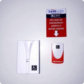 Alarme Audiovisual Sem Fio A Pilha Para Banheiro PNE/PCD Este produto atende aos requisitos da norma abnt-nbr 9050. O alarme sonoro para pessoas com necessidades especiais (pne) visa a comunicação imediata de algum evento acidental ou no auxílio solicitado em caso de necessidade e emergência. O alarme audiovisual é de uso obrigatório nos sanitários acessíveis, podendo também ser utilizados em quartos ou locais onde pessoas que possuem algum tipo de deficiência fique isolados e pode necessitar de ajuda. Sendo recomentado principalmente para hospitais, ambientes comerciais, hotéis e pousadas, casas de repouso, clínicas. Para a total eficiência deste sistema de emergência. A fechadura do sanitário acessível precisa possuir chave reserva ou sistema de abertura que permita que a porta seja aberta pelo lado de fora em casos de emergências. O alarme para banheiro audiovisual emite sinais sonoros e luminosos, possui alcance de aproximadamente 10 a 25 metros. O contato da botoeira e alarme é feita sem fio (wireless), a botoeira possui uma bateria de 12v. Sua botoeira deve ser instalada a 40cm (norma nbr9050) do chão permitindo assim o fácil acionamento em caso de emergência. Ficha Técnica: Tensão de Funcionamento (Alarme): 3 Pilhas Alcalinas de 1,5V tipo AA (não inclusas); Tensão de Funcionamento (Acionador): 1 bateria 12V tipo A23 (inclusa); Princípio de Funcionamento: Ondas de Radiofrequência (RF); Iluminação: LED de Alto Brilho na cor azul (Efeito Estroboscópio); Pressão Sonora Aprox.: 100dB; Consumo Máximo (Alarme):100mA; Alcance Máximo entre Alarme e Acionador: até 30m em áreas livres; Quando existirem obstáculos tais como: paredes, lajes, portas, etc, o alcance diminuirá conforme a interferência; Dimensões Aproximadas Alarme: 6,0 x 9,0 x 2,5cm; Dimensões Aproximadas Acionador: 3,8 x 7,0 x 1,5cm.