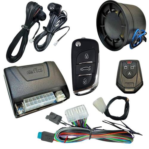 O alarme automotivo FKS FK902 com chave é o modelo perfeito para a proteção do seu veículo, é um dos alarmes mais procurados por consumidores por causa do seu ótimo desempenho e qualidade, que veio para poder facilitar e deixar sua vida mais confortável. ESPECIFICAÇÕES TÉCNICAS: Chave não acompanha lâmina Bloqueio do motor Desliga o rádio com saída positiva Comando de travas negativo Travamento automático de portas após a ignição ser ligada 2 saídas auxiliares Sistema de ultrasom com ajuste de sensibilidade Funções que são programáveis CONTEÚDO DA EMBALAGEM: Módulo Central x1 Sirene Dedicada x1 Chicotes Para Instalação Chave x1 não acompanha lâmina Controle CR941 x1 Argolas x2 Sensores De Ultrassom x2 Manual De Instruções x1