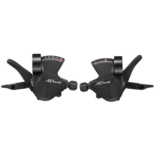 Modelo: SL-M2010 Série: Altus Par: Direita: 9v - Esquerda: 2v (18v) Visor: Sim Acompanha 2 cabos de câmbio Shimano em aço inox Material: Alumínio e Aço Cor: Preto Peso Aprox.: 280g (Par) Marca: Shimano
