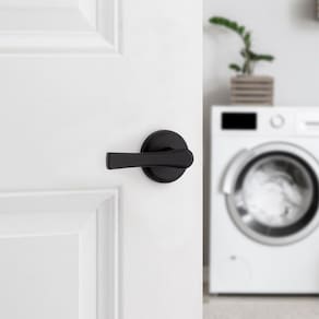 Kwikset Maçaneta de porta de passagem interna Katella, alavanca para portas de armário e corredor, alavanca reversível sem trava, preto fosco, com proteção Microban
