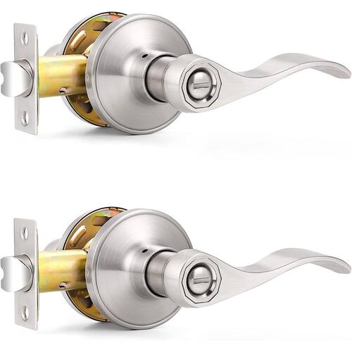 Probrico Pacote com 2 alavancas de porta de níquel escovado, estilo ondulado, puxadores de porta sem chave para cama/banheiro puxadores de porta interiores - ?Privacidade?2 maçanetas de porta de privacidade sem chave para duas portas. Pode ser travado/desbloqueado com o giro do polegar por dentro ou com uma ferramenta de emergência como uma moeda de fora. A maçaneta da porta de privacidade é adequada para banheiro, quarto ou quarto de hóspedes onde a privacidade é necessária. - ?Design elegante?A maçaneta de porta de níquel escovado é requintadamente projetada em um estilo moderno. A forma de onda proporciona uma experiência de aderência mais confortável. A liga de zinco de alta qualidade torna a alavanca resistente ao desgaste, à corrosão e durável. Confirmado com ANSI Grau 3, excede 250.000 ciclos. - ?Alavancas reversíveis?A alavanca de porta sem chave serve para portas destros e canhotos. A alavanca interna pode ser removida da roseta e trocada com a alavanca externa. - ?Dimensões?Comprimento da alavanca: 4,7" (120 mm); Diâmetro da roseta: 2,56" (65 mm); Fundo ajustável: 2-3/20.3 cm ou 2-3/10.2 cm (60 mm ou 70 mm); Espessura da porta: 1-3/20.3 cm a 1-3/10.2 cm (35 mm a 45 mm). A placa quadrada da trava não é removível. - ?Fácil instalação?A maçaneta da porta pode ser facilmente instalada em minutos com uma chave de fenda. O pacote inclui todos os acessórios necessários e as instruções podem ser como modelo.