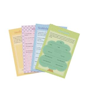 Capa dura impressa e laminada. 4 folhas impressas frente e verso para histórico do bebê, com envelopes plásticos para proteção. Álbum com capacidade fixa, encadernação com rebites, não aceita refil. Folhas em plástico cristal.