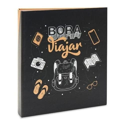Especificações: Modelo: viagem Capacidade: 200 fotos Tamanho da foto: 10cm x 15cm Capa: papelão, papel couche 150g/m2 e papel ofser 150g /m2 Parte externa/ miolo: polipropileno e rebite Quantidade: 2 fotos por página / 4 fotos por folha Dim: alt 22,5cm x larg 18,5cm x comp 5,5cm Ean: 7896013722816