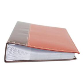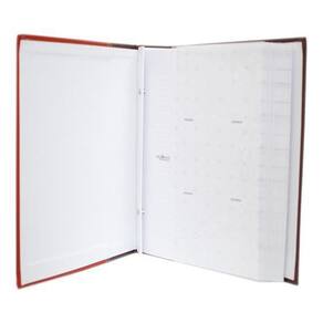 Parte interna: folhas brancas com folhas plásticas com repartições para as fotos e anotações
