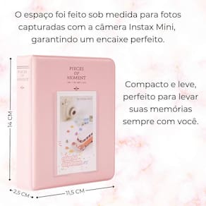 Álbum capa dura premium porta retrato para foto instax mini Cor: lilás dê um toque especial às suas lembranças com o álbum para foto instax mini disponível em diversas cores vibrantes, ele oferece estilo e proteção para suas fotos favoritas. com capa dura resistente e um design pensado para organização, o álbum possui 64 espaços perfeitos para armazenar suas memórias com segurança e praticidade. Além disso, você pode personalizar a capa frontal com uma de suas fotos preferidas, tornando-o único e especial. cada compartimento é projetado sob medida para fotos de câmera instax mini, com o tamanho ideal de 8,5 cm de altura por 5,5 cm de largura, garantindo um encaixe perfeito e preservando suas recordações para sempre. leve suas melhores lembranças com você compacto e leve, esse álbum é perfeito para carregar e exibir seus momentos especiais onde quer que vá. Organize suas fotos com estilo ------------------ ------------------ quantas fotos cabem no álbum R: o álbum possui capacidade para armazenar até 64 fotos, organizadas de maneira prática e segura. quais são as dimensões das fotos que cabem no álbum R: ele é projetado para fotos com 8,5 cm de altura e 5,5 cm de largura, sendo ideal para fotos capturadas com a câmera instax mini. o álbum possui capa dura R: sim, o álbum possui uma capa dura resistente que protege suas memórias e ainda permite personalizar a capa frontal com uma foto. ------------------ Especificações ------------------ Capacidade: 64 fotos. Dimensões das fotos: 8,5 cm altura x 5,5 cm largura . Dimensões do álbum: 14 cm altura x 11,5 cm largura . Compatibilidade de fotos: câmera instax mini. ------------------ Conteúdo ------------------ 1x álbum de fotos. Anúncio referente a álbum Acessórios que ambientam as fotos não inclusos. ------------------ Apresentação: ------------------ - qualidade garantida. - atendimento qualificado. - enviamos para todo o brasil. - compra garantida. - despachamos em até 1 dia útil após confirmação do pagamento Garantimos a devolução por arrependimento em até 7 dias, após o recebimento e de 15 dias contra defeitos de fabricação. Marca: Não Informado Ean: 7795033624585