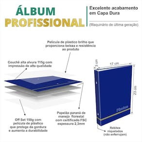 DescriçãoAtenção -O valor do anúnciocorresponde a 1 album 15x21 para 40 fotosDespacho em 24 horas Tem alguma dúvida. Faça-nos uma pergunta Importante Favor escolher o modelo capa na hora da compra. Veja variações em cores diferentes logo acima do botão azul de compras. Só adicionar no carrinho de compras se quiser comprar vários modelos.Descrição:Álbum de fotos para guardar e proteger suas recordações. Os albuns de fotos variados possuiem capas impressos em couche e acabamento brilho . Produto de qualidade e durabilidade, fabricada com os melhores materias do mercado.Tem capacidade para até 40 fotos 15x21 2 fotos por pagina Plastico de polipropileno transparente que protege as fotos.Nunca use pvcFicha técnica-Album de papelao parana duro capas impressos em couche e acabamento brilho colado no papel parana.Parte interna com 20 folhas plásticas de polipropileno para40 fotos 15x21Comprimento : 340mm aberto 160 mm fechado Largura : 50 mmAltura : 230 mmPara isso basta navegar por nossos anúncios em, mais anúncios do vendedor ou em ver todos os anuncios e adicionar ao carrinho os produtos desejados um de cada vez.Dúvidas frequentes:Pergunta :o album do anuncio e para quantas fotosRespostao album vem para 40 fotos 15x21História clipO suíço, alexander buholzer decidiu quando mais velho vir a america do sul. O clima e a recepção dos brasileiros fizeram com que o brasil se destacasse entre os outros países, e , portanto em 1994, escolheu ficar e montar sua empresa nesta linda terra tropical.Alex desde pequeno tinha um grande interesse em guardar todos os retratos da sua família, principalmente, porquê sem estas fotos não existiriam histórias . Assim nasceu a empresa clip juntos com ela todos os seus álbuns, porta retratos e produtos para guardar suas melhores lembranças de vida................