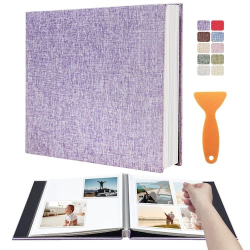 - [Páginas magnéticas autoadesivas para facilitar o uso]: sem necessidade de cola ou fita adesiva - basta descascar e colar suas fotos, mantém as fotos padrão de 4x6, 5x7 e 8x10 com segurança, inclui raspador de plástico para colocá-las sem bolhas