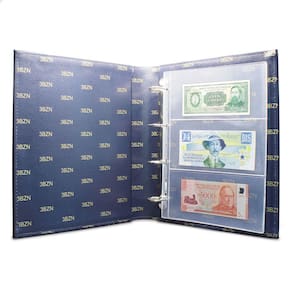 O Álbum de Luxo Azul 10 Folhas para 30 Cédulas 3BZN G é um kit de fichário que acompanha folhas para cédulas em acetato tamanho 32x24cm, a transparência da folha é alta e cristalina, de forma que é possível ver sua cédula sem interferências, e de ambos os lados: frente e verso, dessa forma é possível apreciar sua coleção da melhor forma. Esse kit de folhas é feito em um material resistente sendo o principal organizador de cédulas colecionáveis para colecionador.