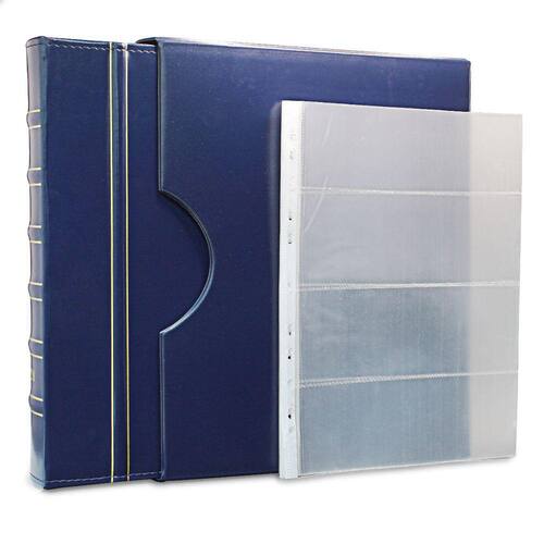 O Álbum de Luxo Azul 10 Folhas PP para 40 Cédulas 3BZN G é um kit de fichário que acompanha Folhas PP. Seu acabamento é transparente, podendo visualizar as cédulas frente e verso. Essa folha é ideal para você criar aquele mostruário que sempre desejou com sua coleção de cédulas antigas, nacionais ou estrangeras e finalmente poder mostrar sua coleção toda organizada para sua família e amigos.