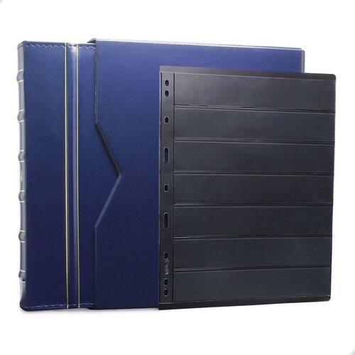 O Álbum de Luxo Azul 30 Folhas para 420 Selos 3BZN P é um kit de fichário que acompanha folhas para selos em acetato preto tamanho 28x21cm, a transparência da folha é alta e cristalina, de forma que é possível ver sua cédula sem interferências, dessa forma é possível apreciar sua coleção da melhor forma. Esse kit de folhas é feito em um material resistente sendo o principal organizador de cédulas colecionáveis para colecionador.