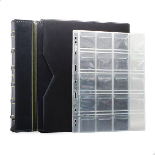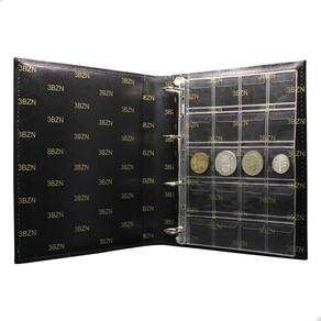 O Álbum de Luxo Preto 30 Folhas para 600 Moedas 3BZN P é um kit de fichário que acompanha folhas para Moedas tamanho 28x21cm, a transparência da folha é alta e cristalina, de forma que é possível ver sua moeda sem interferências, e de ambos os lados: frente e verso, dessa forma é possível apreciar sua coleção da melhor forma. Esse kit de folhas é feito em um material resistente sendo o principal organizador de moedas colecionáveis.