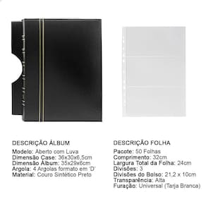O Álbum de Luxo Preto 50 Folhas PP para 150 Cédulas 3BZN G é um kit de fichário que acompanha Folhas PP. Seu acabamento é transparente, podendo visualizar as cédulas frente e verso. Essa folha é ideal para você criar aquele mostruário que sempre desejou com sua coleção de cédulas antigas, nacionais ou estrangeras e finalmente poder mostrar sua coleção toda organizada para sua família e amigos.
